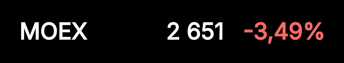 🇷🇺 Сегодня на 19:15 Индекс Мосбиржи MOEX меняется на -3,49