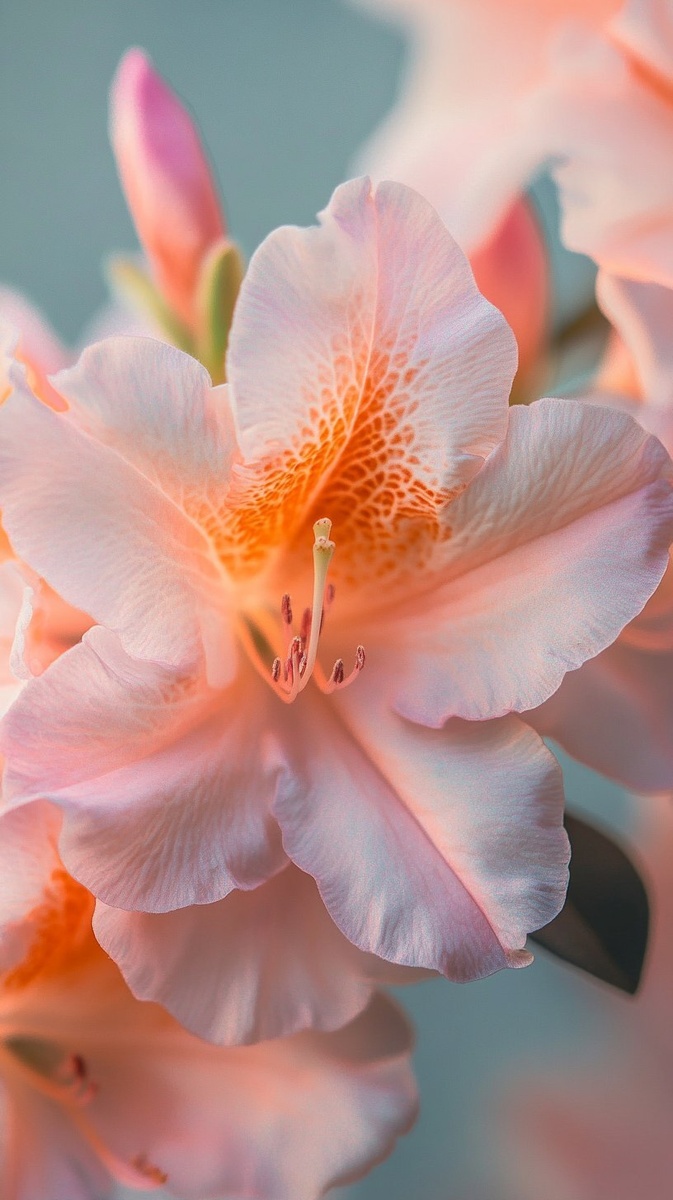 Создано на основе запроса: 6w close-up, macro photography of the petals of an pastel azalea