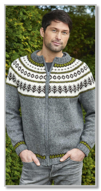 Вам потребуется: пряжа Island Wool Snaeldan 2-ply (100% шерсть; 180 м/50 г) - 350 (400:400:450:500) г серого цвета, по 100 (100:100:150:150) г белого, светло-серого и черного цветов, 50 (50:50:100:100) г зеленого-хаки цвета;