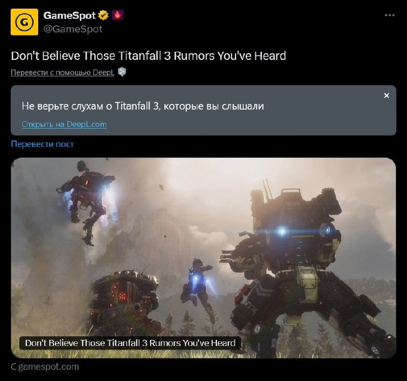 Никакого коупинга: Titanfall 3 не будет — Джефф Грабб По его словам, все последние слухи — ложь и выдумка. Грабб уверен, что в этом году и в ближайшее время мы не увидим ничего связанного с Titanfall, а уж тем более полноценную часть с сюжеткой и мультиплеером. Подробнее: https://hard-tm.su/threads/85264/ 🕹HARD-TM — Подписаться