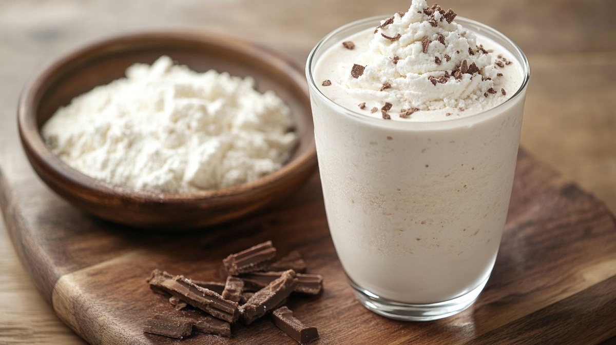 Создано на основе запроса: white powder in a bowl next to a vanilla milkshake