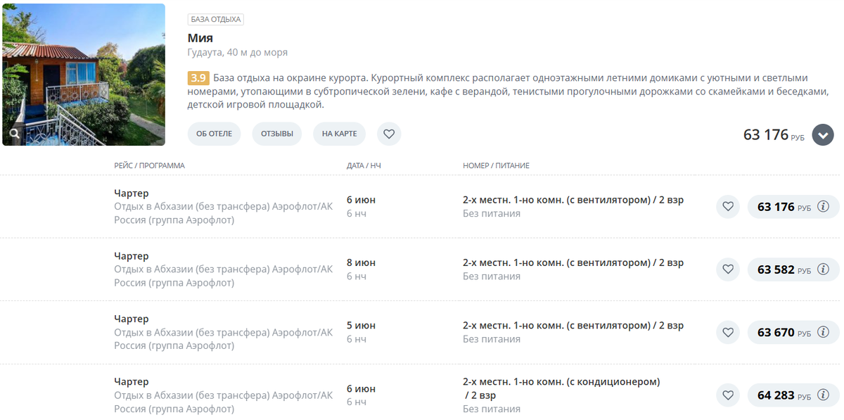 Доброго дня! Мы представляем вам новую часть серии "Частные отзывы из первых уст". В этой подборке вы найдете мнения настоящих посетителей, которые останавливались в различных гостиницах и делились своими впечатлениями. Каждый отзыв уникален и актуален. Теперь давайте взглянем на базу отдыха «Мия», расположенную в Гудауте, Абхазия. Оцениваю на 4 звезды, поскольку до моря нужно идти через оживленную дорогу. Территория базы отдыха "Мия" компактная, но приятная. Мебель в номерах старая, однако есть собственный душ и туалет. Персонал всегда отзывчивый и готов помочь по любым вопросам. Питание простое, но приготовлено с заботой. Один раз в неделю проводится дискотека. Недалеко расположены продуктовые магазины, а до рынка около 20 минут ходьбы. Единственное преимущество базы отдыха "Мия" — это пустынные пляжи, однако на этом положительные стороны заканчиваются. Питание отвратительное, завтрак начинается в 9:00 утра, когда уже стоит невыносимая жара. Мебель находится в плачевном состоянии, ма