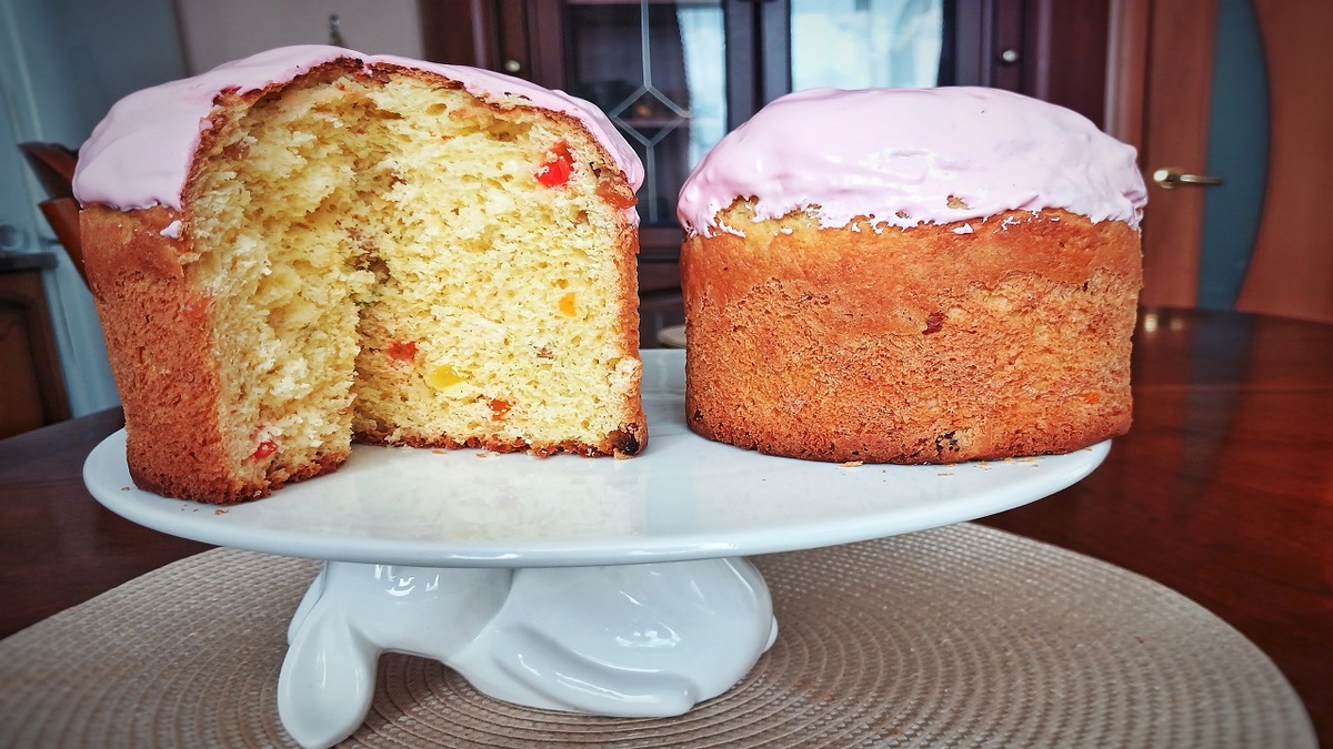 Рецептов куличей великое множество и на мой взгляд все они хороши. И сегодня я предлагаю рецепт кулича на сметане. Невероятно нежный и очень вкусный. Растереть яйца с сахаром и солью. Соль придаст желткам яркую окраску. Взбить до легкой пены и отправить в холодильник. Сделать это можно за 4 часа до приготовления. Я оставляла до поднятия опары. В теплом молоке развести дрожжи, добавить 2 столовые ложки сахара и муку. Масса должна получится чуть гуще чем на блины. Молоко в этом рецепте нужно только для опары. Накрыть салфеткой и оставить на 30-40 минут. После того как опара созрела добавить сметану, растопленное сливочное масло и все остальные продукты, кроме изюма. Замесить тесто. В конце замеса добавить промытый изюм, его обязательно перемешать с мукой, чтобы в форме он не опустился на дно. Часть изюма можно заменить цукатами. Тесто для куличей не должно быть крутым. Оно липнет к рукам, но не тянется. Готовое тесто посыпать мукой, накрыть полотенцем и поставить в теплое место. Пример