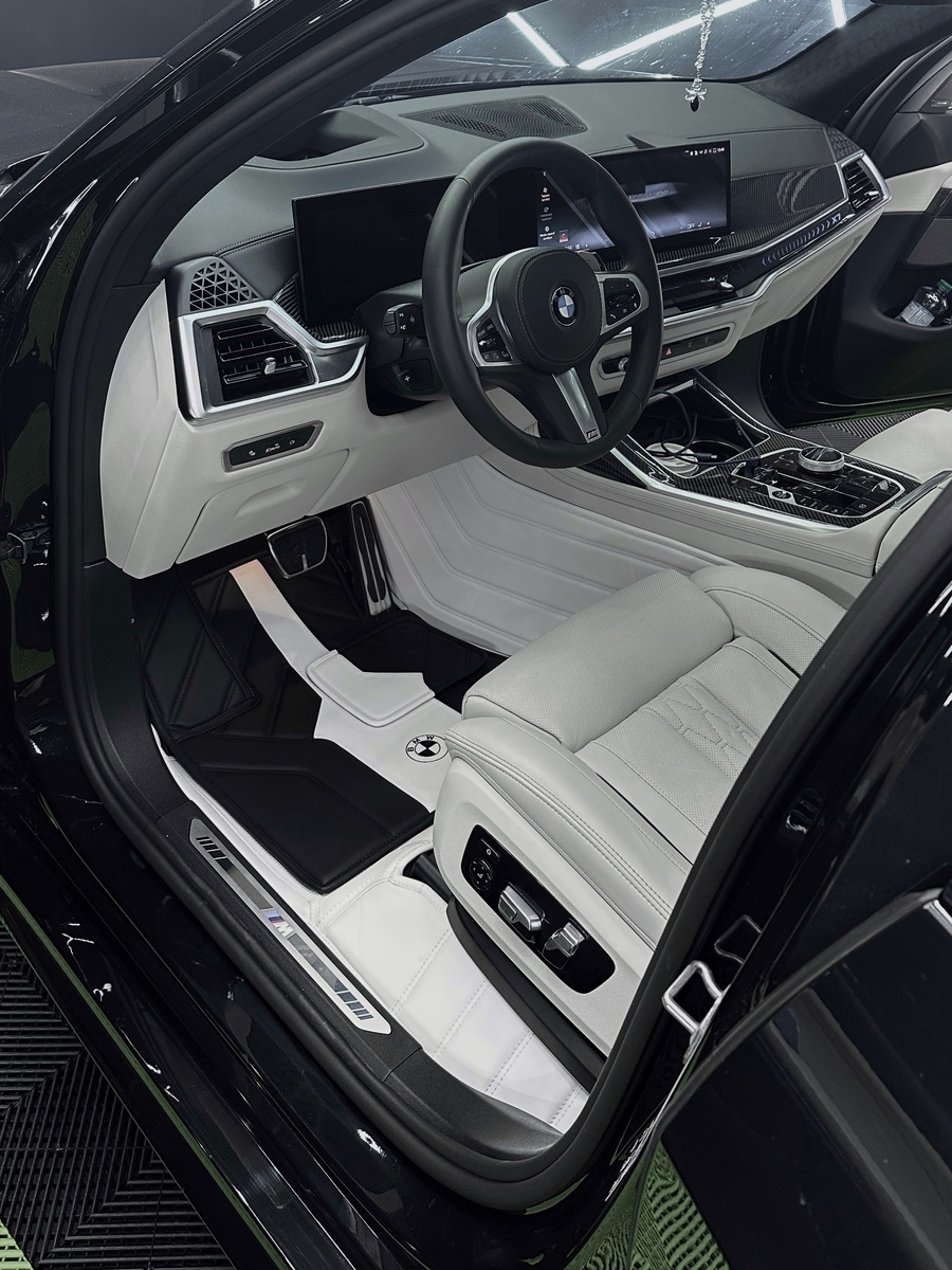 Когда садишься в машину, сразу бросается в глаза внешний вид ковриков, и насколько они вписываются в дизайн салона. С изделиями от Esteem.Pro об этом можно не переживать. Цвет, фактура, прошивка — всё подобрано так, будто это штатная часть интерьера. Никаких зазоров, складок или посторонних линий — только аккуратная посадка по форме пола. Владельцы BMW зачастую выбирают для своих аксессуаров прочную эко-кожу, которая хорошо держит форму и защищает родное покрытие от грязи и влаги. Внутри ковры дополнены водоотталкивающим слоем, благодаря которому их легко очистить. Каждый элемент продуман: в светлом салоне — спокойные, мягкие оттенки и перфорация в стиле сидений; в спортивной версии — контрастная строчка, подчёркивающая характер машины.