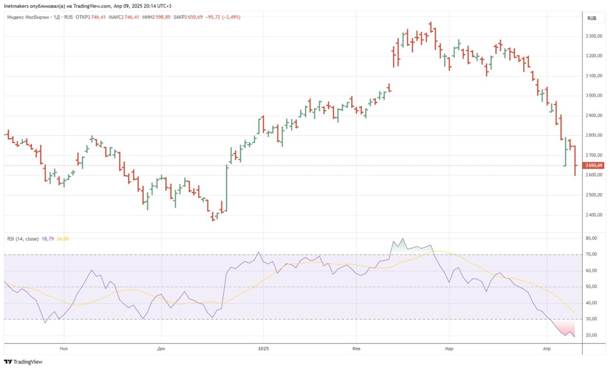 ❗️9 апреля российский фондовый рынок обрушился, индекс МосБиржи упал на 3,49% до уровня 2650,69