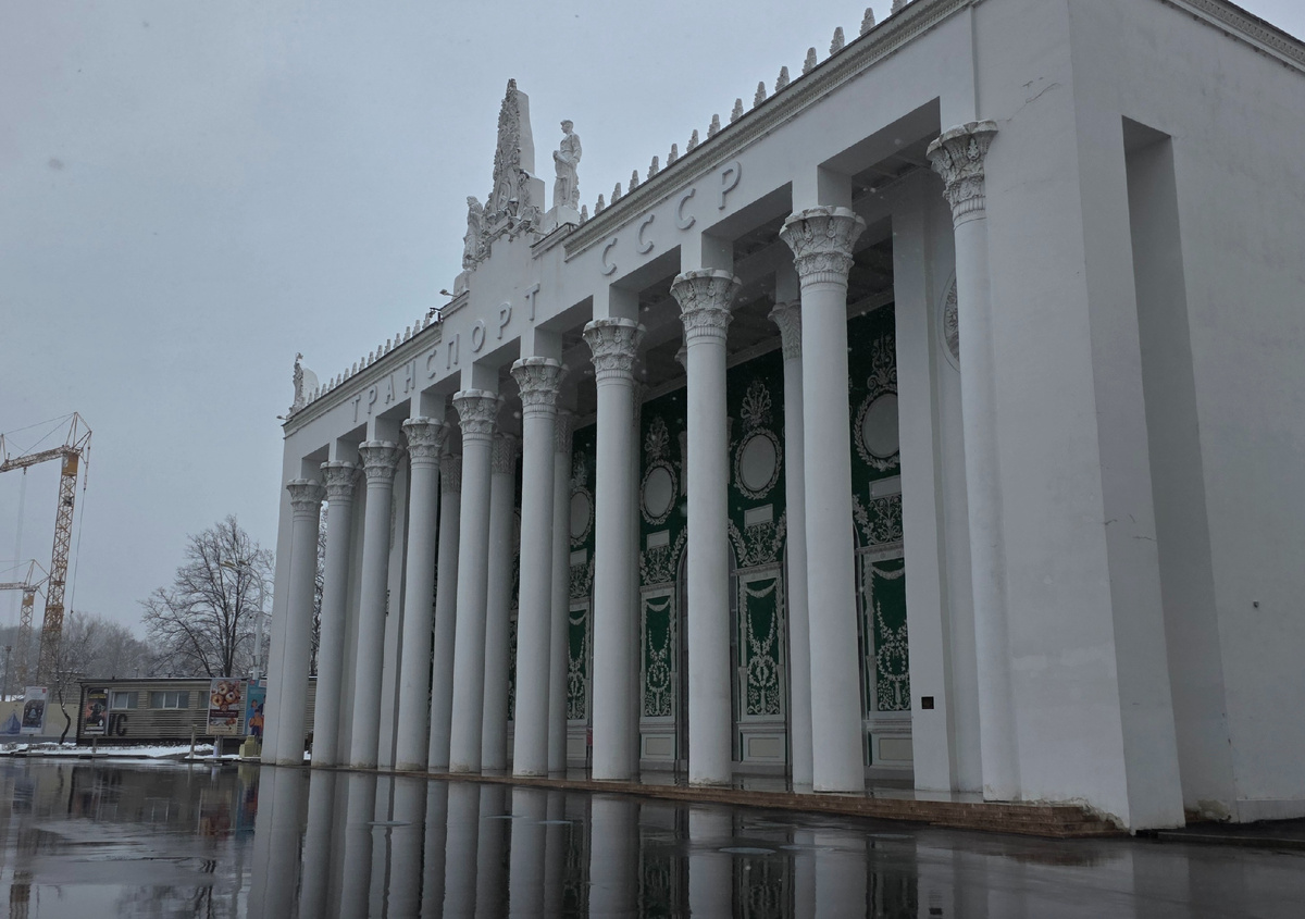 Здание «Транспорт СССР» — одно из знаковых сооружений Выставки достижений народного хозяйства (ВДНХ), расположенной в Москве. Оно было построено в 1954 году по проекту архитектора А. Ф. Жукова в рамках масштабной реконструкции выставочного комплекса после Великой Отечественной войны. Этот павильон стал символом прогресса советской транспортной системы и являлся важным элементом архитектурного ансамбля ВДНХ. Архитектурные особенности Здание выполнено в стиле сталинского ампира, который сочетал элементы классицизма с советским декором. Центральный фасад украшен колоннадой и фронтоном, символизирующими величие и мощь Советского Союза. Входная группа оформлена массивными дверями, ведущими в просторный вестибюль. Внутри павильона располагались экспозиции, посвящённые достижениям различных видов транспорта: железнодорожного, автомобильного, морского и воздушного. Экспозиция Павильон был предназначен для демонстрации новейших моделей автомобилей, поездов, самолётов и кораблей, произведённ