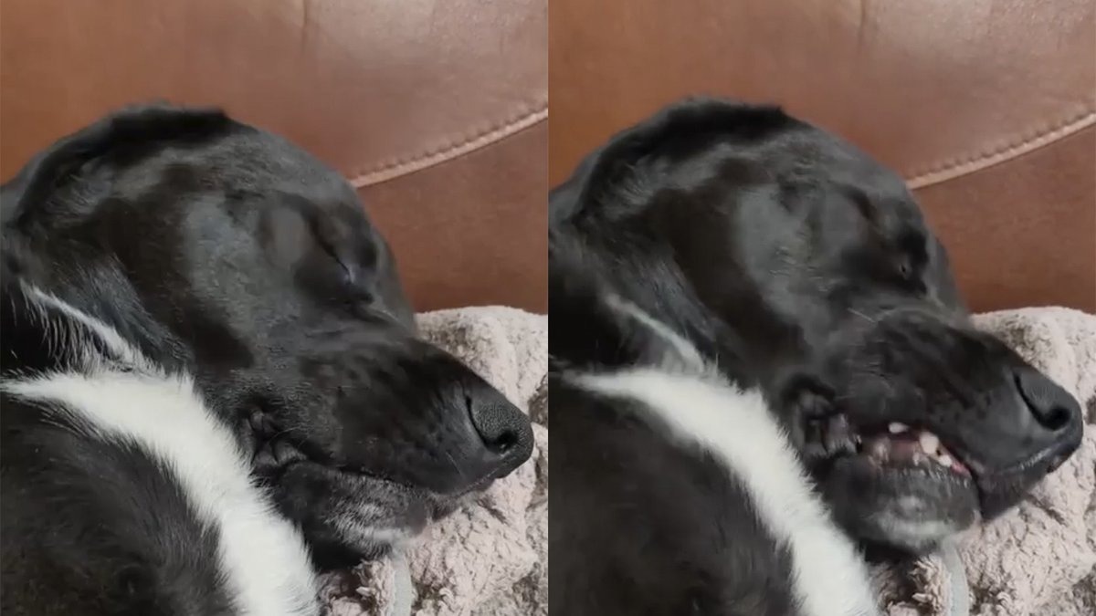 Пес по кличке Космо, помесь лабрадора-ретривера и испанского мастифа, шокировал хозяев своим поведением, когда уснул. По словам хозяйки, в реальной жизни этот добродушный гигант никогда не проявлял агрессии. Но, уснув, он впервые «оскалился и зарычал». Хотя его «грозное рычание» скорее можно назвать храпом, зубы пес действительно показал. «Он явно воюет во сне с вражеским спаниелем», — прокомментировала хозяйка. Такое поведение у своих питомцев замечают многие хозяева. Собаки могут дергать лапками или даже скулить во сне. Но почему это происходит? Подробный ответ есть в нашей статье.