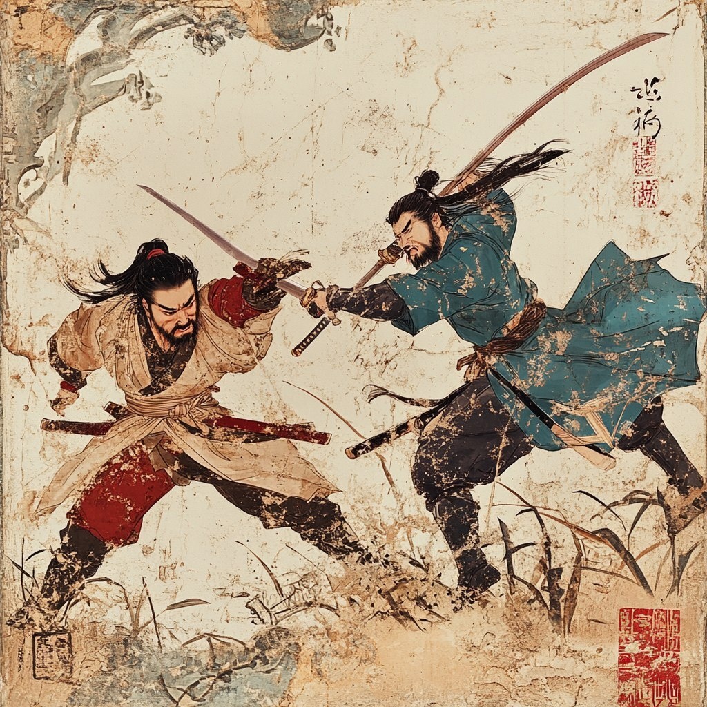 Создано на основе запроса: texture , edo era art, chinese soilder fighting --- Автоперевод: Текстура, эпоха Эдо, китайское солдат борьба Как тебе эта картинка? 🤔 https://dzen.ru/id/65c0c65c86e4f837c27b24d7 #ИИ #AI #нейросеть #midjourney #art