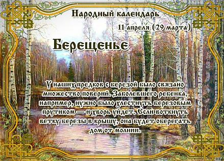 11 апреля. Марк. Кирилл. Берещенье. День березы. В этот день Православная Церковь почитает священномученика Марка, епископа Арефусийского, и мученика Кирилла Илиопольского. ❇️ПРИМЕТЫ ✔️Какая погода 11 апреля, такой она будет и 11 октября. ✔️Много сока на березе – к дождливому лету. ✔️Если сначала опушается береза – жди сухого лета, если ольха – мокрого. ✔️Сильный дождь – к урожаю овса. ✔️Много лебедей – к теплой весне. ✔️Чибис низко летает – к ясной и сухой погоде. ✔️Сороки низко вьют гнезда – летом часто будут грозы. ✔️Облака быстро движутся в одну сторону – к жаркой погоде. ✔️Галки стаями летают, или солнце за тучу садится – к дождю. ❌ЧТО НЕЛЬЗЯ ДЕЛАТЬ ✔️Нельзя делать заготовки еды на несколько дней вперед. Согласно примете, хозяйка, решившая нарушить запрет и подстраховать себя на кухне, может серьезно заболеть. ✔️Запрещается на Берещенье просить у березы – символа этого дня, обладающего сегодня большой магической силой, – выполнить слишком много просьб, иначе это капризное д
