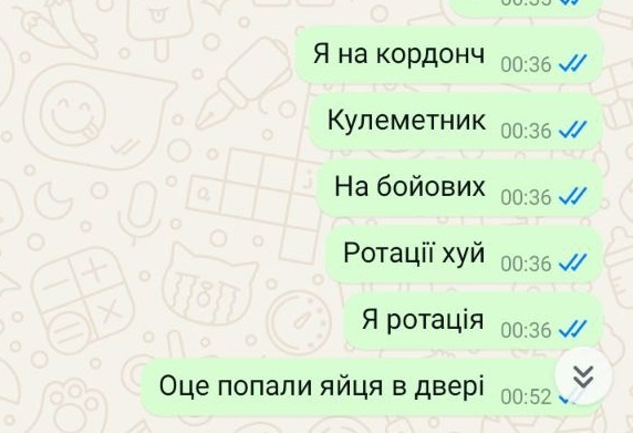 Итак, Вадим поведал жене, что он уже на передовой. Ротации нет. Ситуацию он характеризовал как "попали яйца в двери"