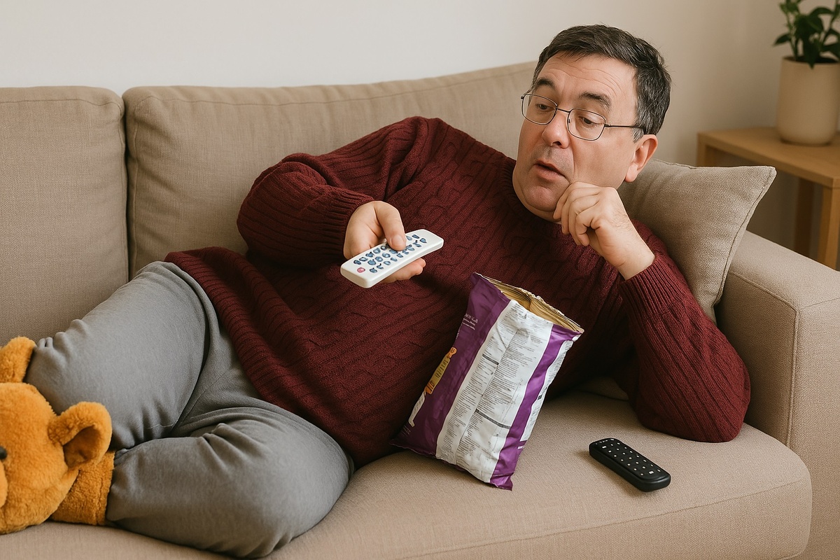 Алексей Иванович лежал на продавленном диване, обитом выцветшей тканью в мелкий цветочек, и лениво тыкал кнопки пульта. Телевизор гудел, перескакивая с новостей про очередной вирус на рекламу чудо-таблеток от всего на свете. За окном хмурилось апрельское небо, а в комнате пахло вчерашним борщом и чуть подгоревшей курицей. Алексей, грузный, с рыхлым животом, выпирающим из-под растянутой футболки, недовольно почесал седую щетину на подбородке — бриться было лень уже неделю.