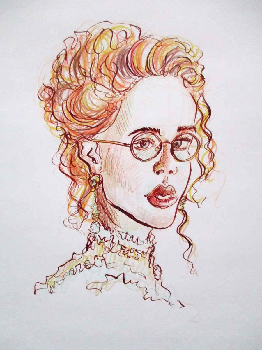 Девушка в очках тушь + цветные карандаши #100_портретов_с_катей_беллами