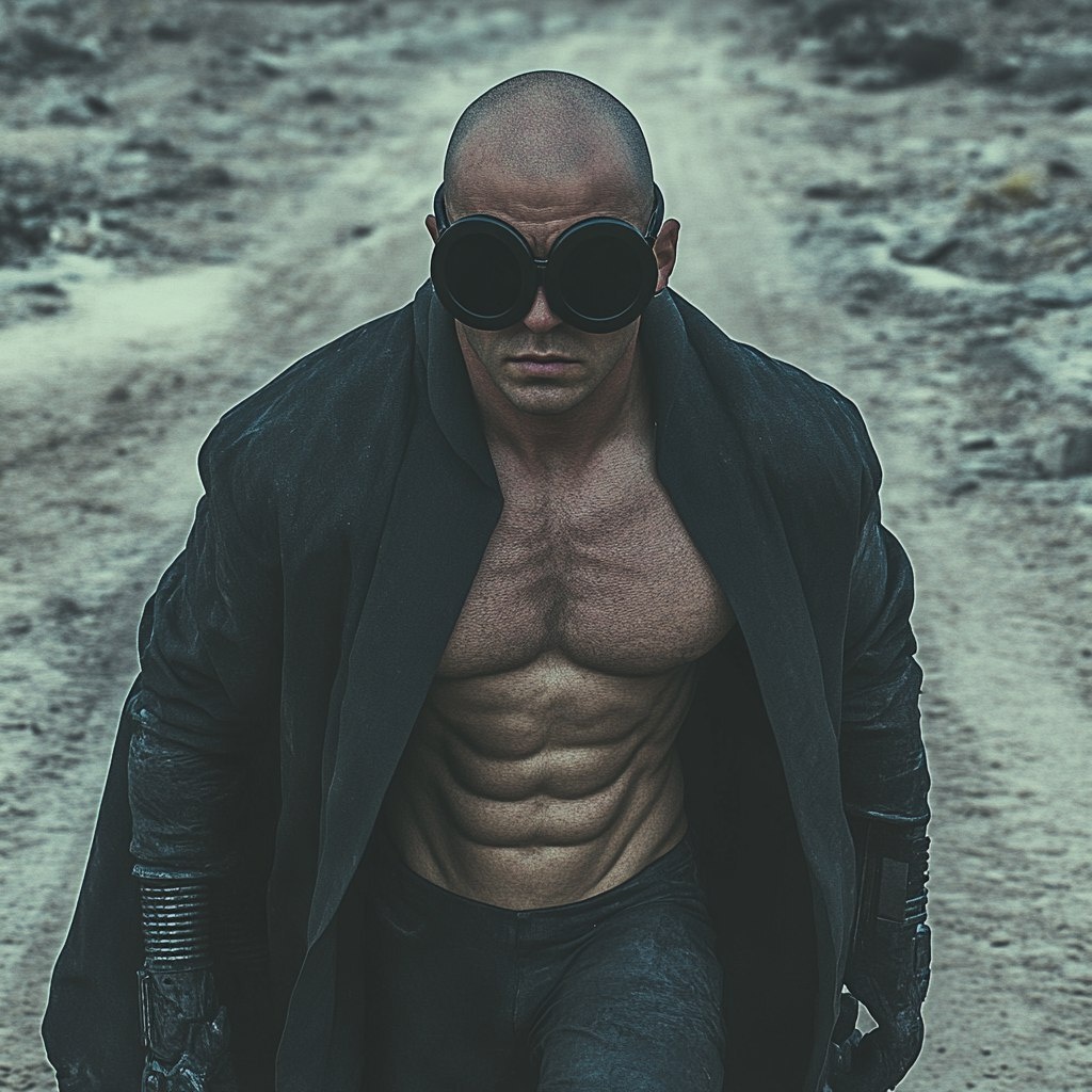 Создано на основе запроса: mysterious man crosses a nightmarish wasteland / wearing thick futuristic black circular sunglasses, diesel punk clothing and cloak / ripped physique / bald head / super clean skin / clean shaven / apocalyptic dystopian atmosphere / abysmal / atmospheric / creepy / dark / dirty / dreary / eerie / foreboding / ghastly / grainy / gritty / horrific / imposing / intimidating / macabre / menacing / moody / mysterious / ominous / phantasmagorical / scary / strange / tumultuous / uncanny / weird --- Автоперевод: Таинственный мужчина пересекает кошмарную пустошь / ношение толстых футуристических черных круговых солнцезащитных очков, дизельной панк -одежды и плащ / разорванное тело Как тебе эта генерация? 🤔 https://dzen.ru/id/65c0c65c86e4f837c27b24d7 #ИИ #AI #нейросеть #midjourney #art