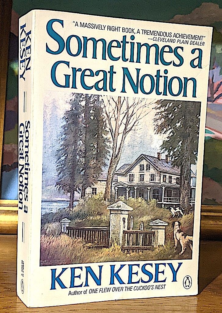 Когда я решил, что вернувшись к статьям на Дзене, стану делиться впечатлениями о своих любимых произведениях, то сразу подумал, что первой книгой из моих тридцати станет этот роман Кена Кизи. Не знаменитый «Пролетая над гнездом кукушки», а именно оставшийся в его тени Sometimes a Great Notion1964 года (встречаются варианты перевода: «Порой накатывает вдохновение», «Порою нестерпимо хочется», «Порою блажь великая»). Попробую объяснить свой выбор. Выпустив в 1962-м году «Полёт над гнездом кукушки», Кен Кизи стал знаменитостью. Это яростный бунтарский текст, где анархист и весельчак МакМёрфи оказывается в антиутопической системе психиатрической клиники. Писатель стал одним из лидеров нарождающейся контркультуры. Все ждали чего-то подобного от его следующей книги (которую сам Кизи считал более важной, чем предыдущая), он исчез на пару лет из публичного поля, чтобы сосредоточиться на работе. То, что появилось в итоге, роман «Порою блажь великая», обманул все ожидания. ...Из окна стоящего