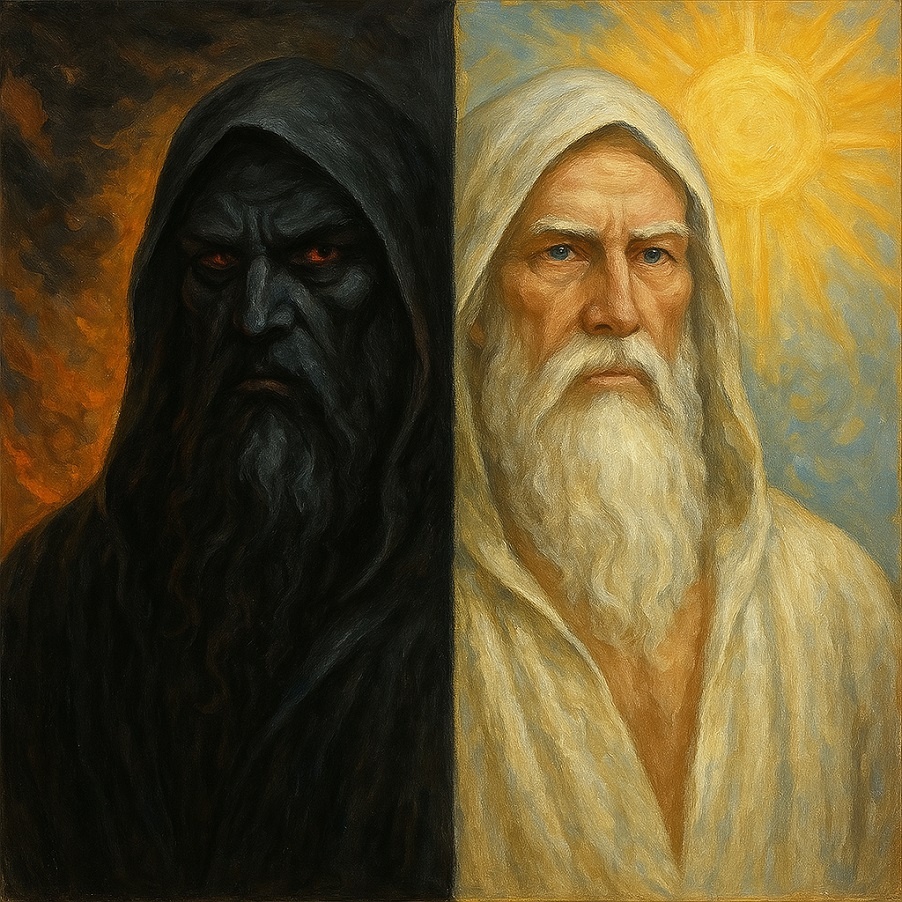 Введение В славянской мифологии встречаются два загадочных образа, которые со временем обрели почти мифическую противоположность: Чернобог и Белобог. Один — тьма, другой — свет. Один приносит хаос, другой — порядок. Один вызывает страх, другой — надежду. Однако, если взглянуть глубже, становится ясно: это не враги, а две части одного целого, две грани великого баланса мира. В этой статье мы: Белобог — бог света, дня, урожая, порядка, солнца и справедливости. Белобога почитали: Он был божеством проявленного мира, Яви, где всё ясно, логично, понятно. Чернобог — бог тьмы, ночи, разрушения, хаоса, тайного и трансформации. Чернобог — не дьявол, как пытались представить поздние христианские источники, а необходимая сила разрыва, чтобы началось новое. Ему поклонялись: Он — божество Нави, мира предков, сна, смерти и перерождения. Чернобог и Белобог — это архетипическая пара, как Инь и Ян, Свет и Тень, Дыхание и Тишина. В разных версиях: Их встреча — начало мира, их борьба — вечный цикл, их тан