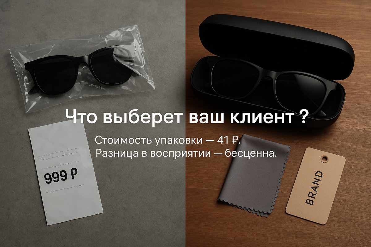 ⠀ Как то к нам обратился клиент, который занимался продажей солнцезащитных очков в летний сезон. Розничная цена — от 800 до 1000 рублей. Себестоимость с доставкой до Москвы - всего 150 рублей. Маржинальность отличная, казалось бы, всё идеально… но есть одна проблема - выкуп составляет всего 46%. Почему так? Клиент предположил, что покупатели заказывают по 10 пар очков, примеряют, выбирают одну — остальные возвращают. В этом есть доля правды: внешний вид и посадка очков действительно сильно влияют на выбор. Но я решил взглянуть на ситуацию глазами покупателя. Представьте: вам приходят очки за 1000 рублей… в обычном целлофановом пакете. Даже если сами очки хорошие, упаковка обесценивает товар. Подсознательно вы начинаете искать недостатки, чтобы оправдать возврат: “Ну не стоят они своих денег…” А теперь представим другую картину. Те же очки приходят в стильном футляре, внутри — салфетка из микрофибры для ухода. Всё аккуратно, красиво, приятно в руках держать. Здесь уже появляется ощущени