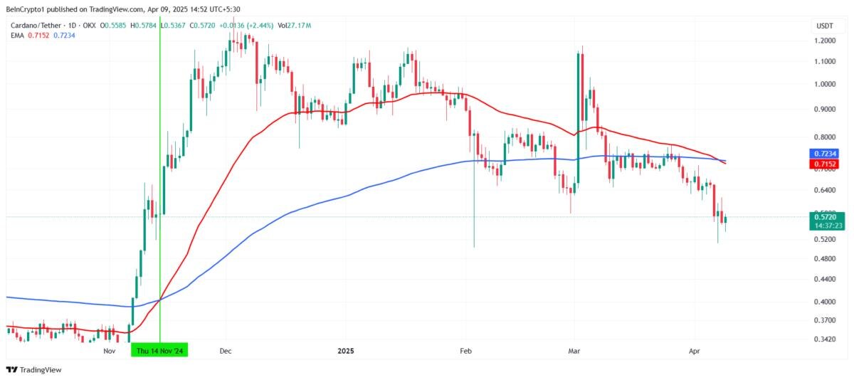 «Крест смерти» Cardano: цена ADA может упасть ниже $0,5