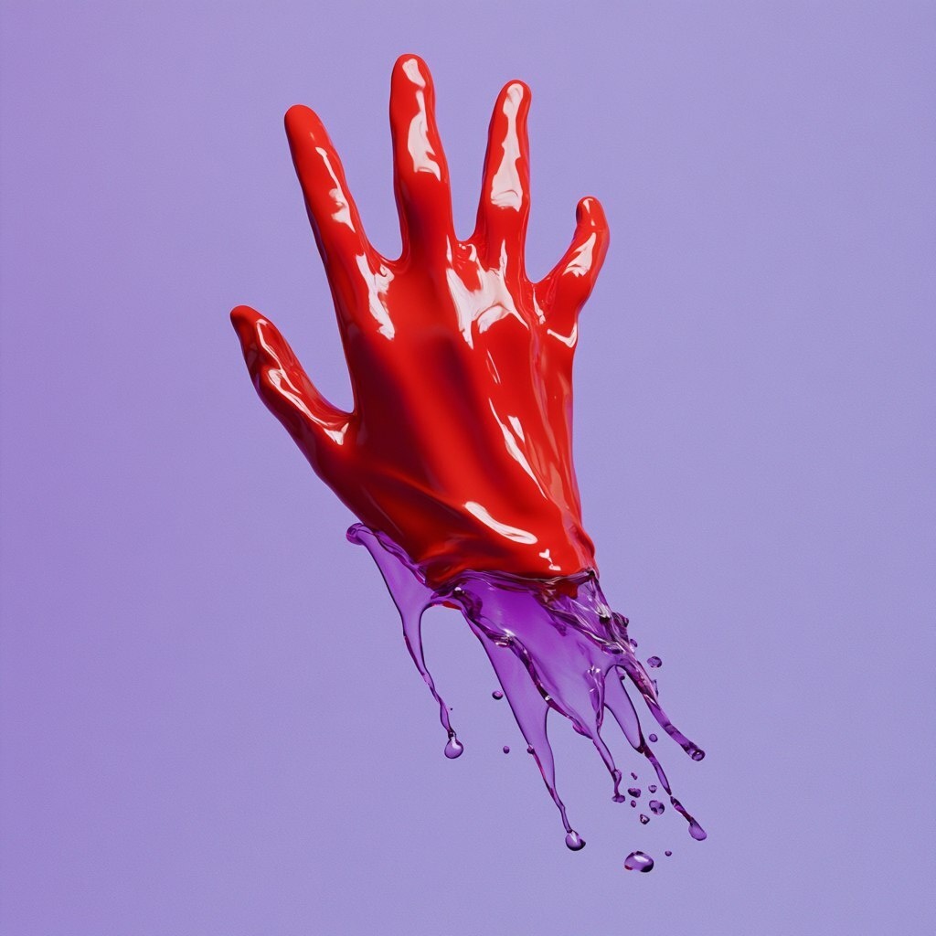 Создано на основе запроса: close up of a flame red latex glove falling on purple air