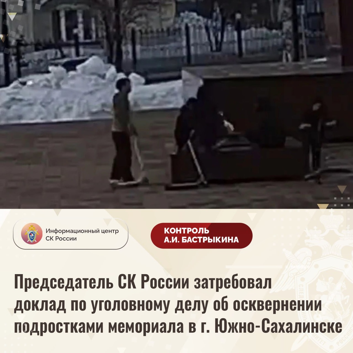Председатель СК России затребовал доклад по уголовному делу об осквернении подростками мемориала в г. Южно-Сахалинске
