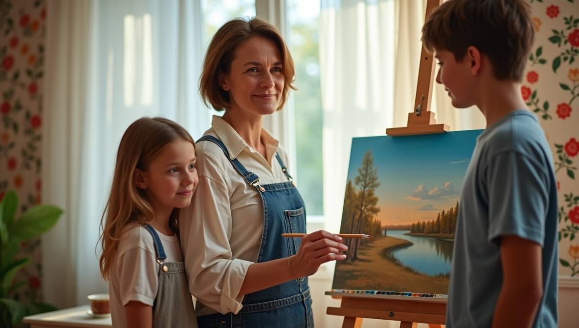 Елена ходила на курсы каждую субботу. Она училась смешивать оттенки, работать с тенями, передавать настроение. Дома рассказывала об этом детям.