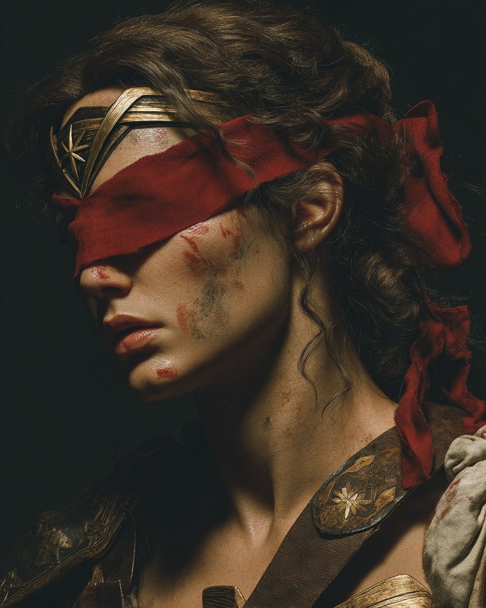 Создано на основе запроса: brutal and sinister Wonder Woman, athletic but elegant, painted by Caravaggio and Rembrandt
