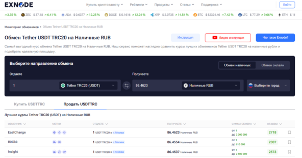 Когда вы ищете, где продать USDT за рубли, криптообменники дают возможность: