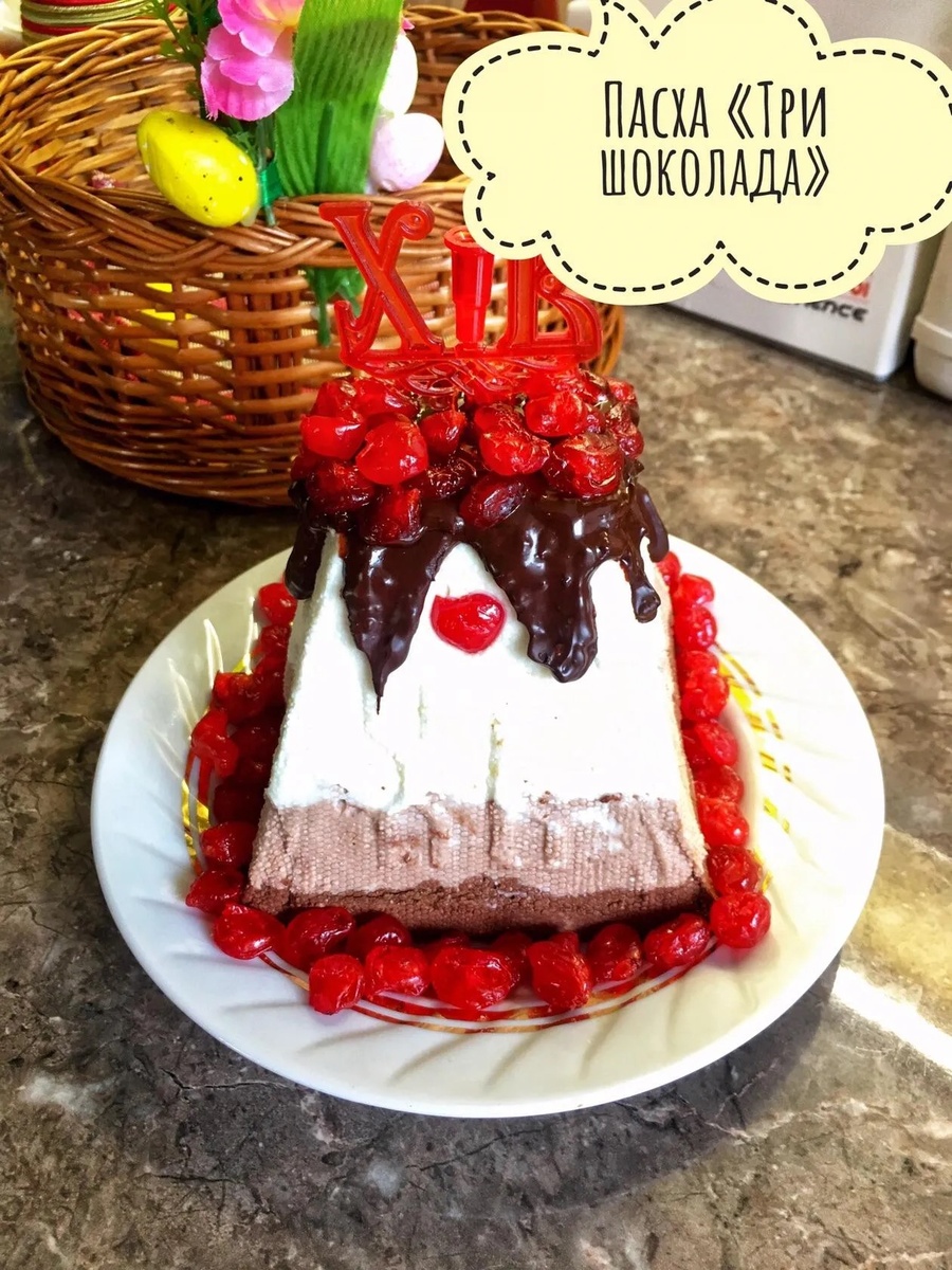 👩🏻🍳 Творожная пасха традиционно имеет вид четырёхгранной усеченной пирамиды. В православном контексте форма творожной пасхи является олицетворением Голгофы и означает божью благодать. 👩🏻🍳Ингредиенты : 500 грамм творога 9% жирности (можно жирнее) 100 г сахарной пудры 1 грамм ванилина 150 мл сливок 33% 100 г сливочного масла 50 г шоколада для тёмного слоя какао-порошок немного для среднего слоя 👩🏻🍳Приготовление: Перетереть хорошо творог, сливочное масло размягченное, ванилин, сливки, сахарную пудру. До однородности. Масса довольно густая должна быть. Делим массу на 3 части. 🙌🏻 Используем пасочницу. И если сделать Пасху трехслойной, то это очень будет вкусненько. В пасочницу укладываем слоями: 1 слой—обычная приготовленная творожная масса, 2 слой—творожная масса+добавить какао порошок. Вкусный шоколадный вкус будет. Светло-коричневый слой. 3 слой—остаток творожной массы основной+вмешиваем растопленный на водяной бане шоколад до однородности цвета. Этот слой самый