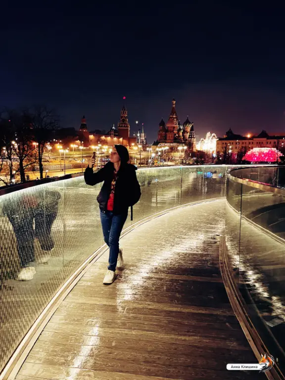 Парящий мост в «Зарядье» не ведёт на другой берег — и это даже к лучшему. Потому что главная его цель — не соединять, а вдохновлять. Мост будто завис в воздухе. Он построен в форме бумеранга — длинный (почти 150 метров), бетонный. А по краям — стеклянные перегородки, такие прозрачные, что аж немного страшно. Но красиво. С одной стороны — Москва-река с её извилистыми набережными, с другой — Кремль, храм Василия Блаженного и та самая сталинская высотка на Котельнической. С парящего моста открывается прекрасный панорамный вид. Туристы и местные жители фоткаются здесь каждый день. Это место обожают клипмейкеры, блогеры, киношники. Иногда здесь даже проводят мини-концерты для телепроектов. А ещё устраивают свидания.