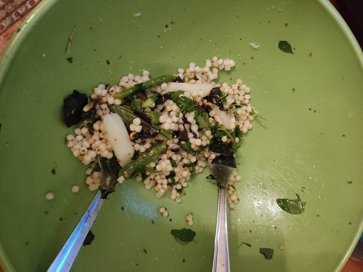 Салат из жемчужного кускуса со спаржей и медово-лимонного соуса