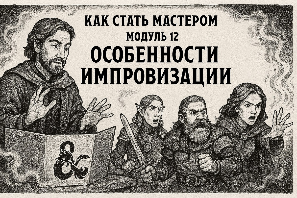 Модуль 12: Особенности импровизации https://author.today/reader/434359/4064451 12.1. Импровизация при неожиданных действиях игроков. 12.2. Использование наработанных ресурсов для импровизационных моментов. 12.3. Методы поддержания структуры сюжета при импровизации. 12.4. Как сделать экспромт естественной частью игры. Юрий Тихомиров. Подземелья и вопросы: как стать Мастером?