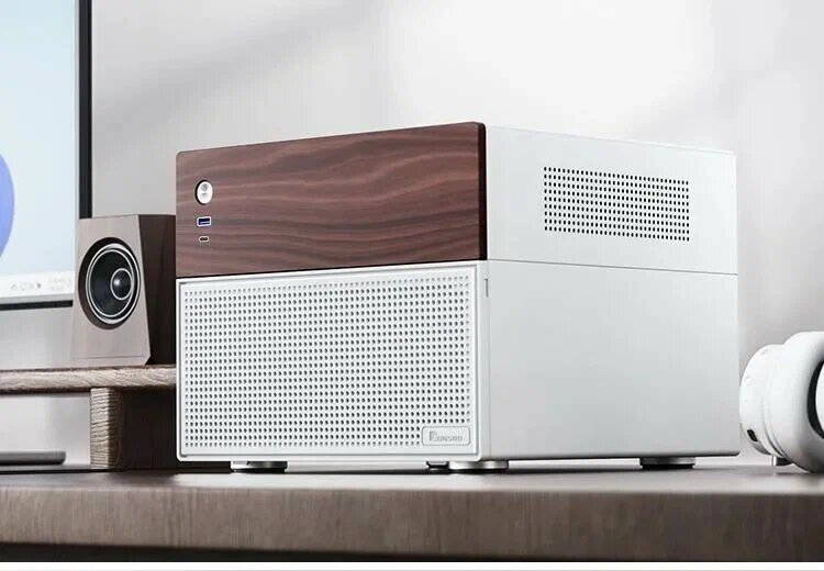 Приобрёл себе корпус Jonsbo N4 White для сборки NAS. White — понятно, означает белый цвет. Однако, корпус не полностью белый, верхняя часть передней панели выполнена из лакированного дерева (или пластик под дерево, не отличить). Лак матовый, следов от пальцев не оставляет. Материал корпуса — сталь. Сборка корпуса не самая точная, но на вполне достойном уровне. На очень достойном. Нижняя передняя панель из пластика, закрывает дисковый отсек, крепится на магнитах. Корпус Jonsbo N4 – это компактный корпус формата Micro-ATX и Mini-ITX с вертикальной компоновкой, выполненный в стиле "сет-топ бокса" (аналогично компактным ПК или NAS). Jonsbo N4 – отличный компактный корпус для Media-PC, Mini-ITX игровых сборок или NAS. Его вертикальная компоновка экономит пространство, а продуманная система охлаждения обеспечивает стабильную работу даже с мощными компонентами. Однако ограничения по БП и охлаждению CPU могут стать проблемой для высокопроизводительных систем. Мне понравился и по компоновке и п