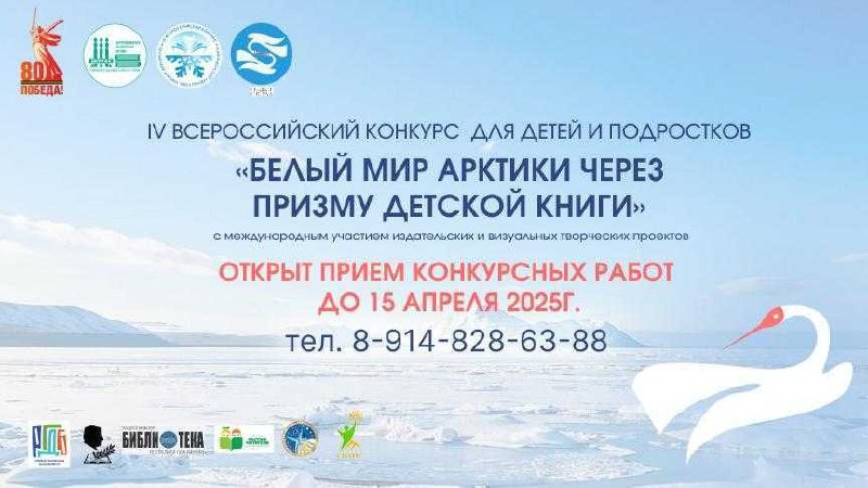 БЕЛЫЙ МИР АРКТИКИ ЧЕРЕЗ ПРИЗМУ ДЕТСКОЙ КНИГИ❄️ Стартовал прием заявок на IV международный конкурс «БЕЛЫЙ МИР АРКТИКИ ЧЕРЕЗ ПРИЗМУ ДЕТСКОЙ КНИГИ», который в этом году приурочен к 80-летию Великой Победы и прилету стерхов в Якутию после зимовки в Китае. Работы в номинациях «Постер» и «Иллюстрация» могут быть исполнены различными художественными техниками по усмотрению участника.✏️ Больше информации на сайте библиотеки: https://clck.ru/3LD7m9