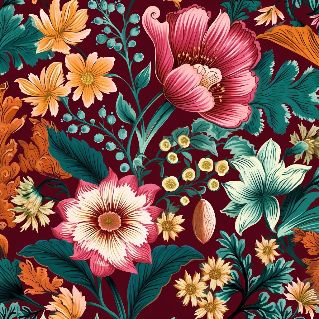 Создано на основе запроса: Indian chintz, plants, mogul flowers, seamless repeating pattern, wallpaper, illustrated, simple, decorative, in Amber Palace style, soft pinks, reds, teals, ochres, --- Автоперевод: Индийский чинц, растения, цветы магната, бесшовный повторяющийся рисунок, обои, иллюстрированные, простые, декоративные, в стиле янтарного дворца, мягкие розовые, красные, чайные, охры, Как тебе вариант? 🤔 https://dzen.ru/id/65c0c65c86e4f837c27b24d7 #ИИ #AI #нейросеть #midjourney #art