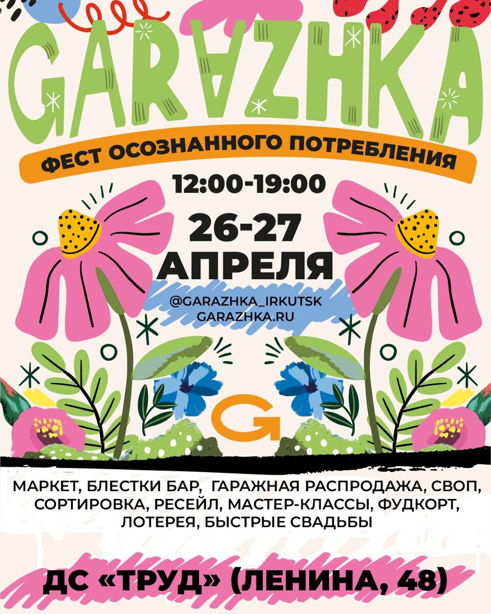 26-27 апреля в Иркутске пройдет весення «Гаражка». 🧡 Ярмарка осознанного потребления отметит свой второй день рождения. Гости события смогут приобрести винтаж и хендмейд, экологично избавиться от старых вещей и вторсырья, а также сыграть быструю свадьбу 👰♀️ На площадке фестиваля будет организовано несколько интерактивных зон: ✔️ своп — освободить гардероб от лишнего и найти новую вещь бесплатно; ✔️ гаражная распродажа — дать вещам вторую жизнь и отыскать винтаж за символическую цену. ✔️ маркет — купить творчество локальных брендов и хендмейдеров; ✔️ мастер-классы — научиться чему-то новому; ✔️ быстрые свадьбы — заключить шуточный брак за пару минут или скрепить дружбу росписью; ✔️ сортировка — сдать вторсырье и узнать, как его перерабатывают; 🗺 Локация — стадион «Труд», вход свободный. https://1baikal.ru/novosti/vesennyaya-garazhka-proydet-26-27-aprelya-v-irkutske