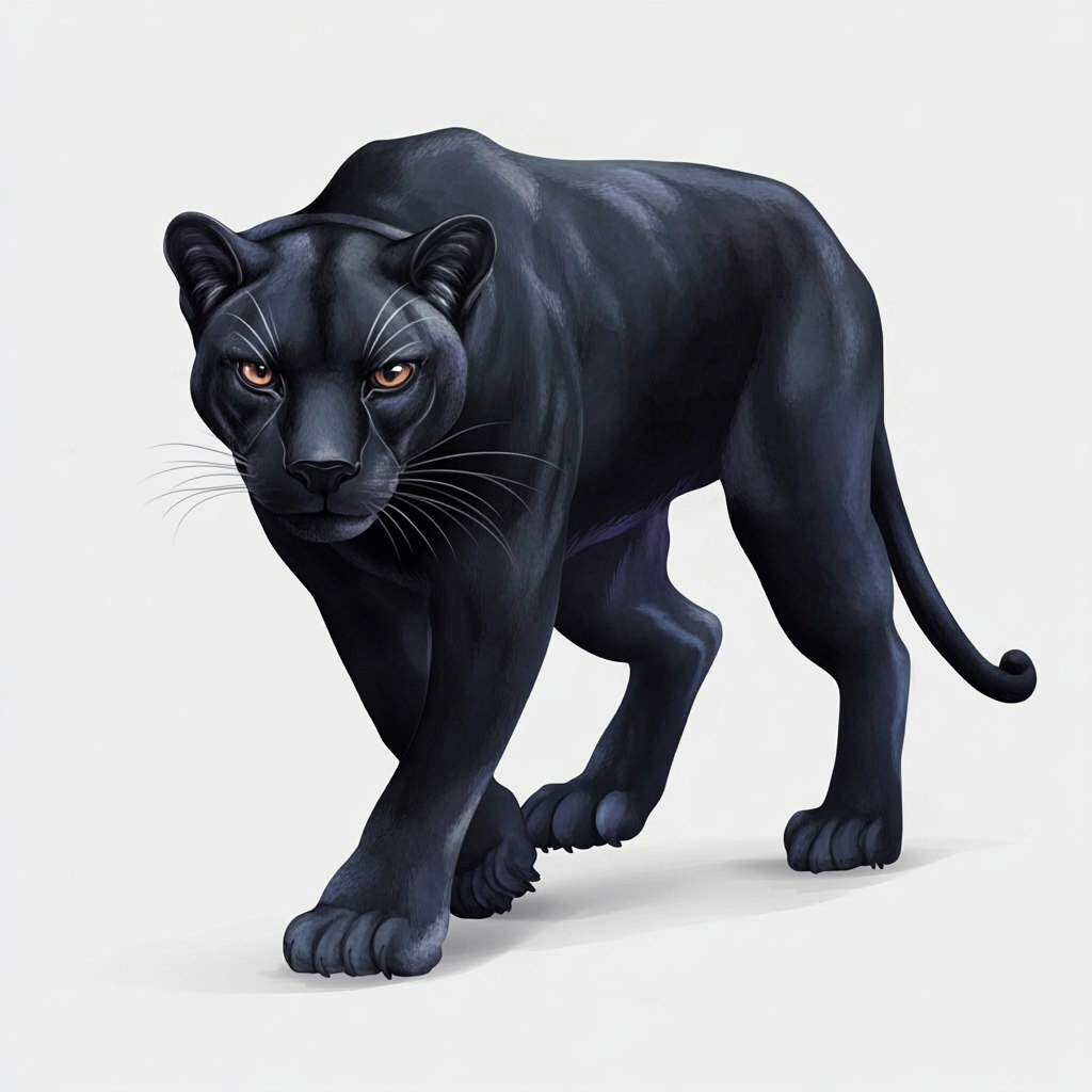 Создано на основе запроса: high detail realistic cartoon panther walking isolated background black fur
