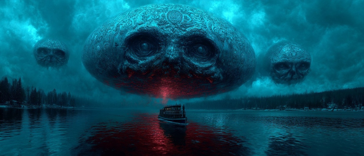 Создано на основе запроса: Spaceships pass over a lake of souls