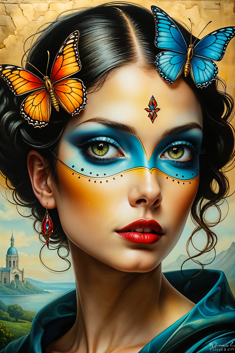 Лицо, сочетающее в себе чувствительность высокого Возрождения с современными, суровыми текстурами Брайана М. Вивероса и сказочной атмосферой Эсао Эндрюса, воплощающее точность да Винчи и глаза тонкой тайны. Сюрреалистические элементы Эндрюса тонко проявляются в форме бабочки, сидящей на его щеке, светотени, текстуры холста, масла, гипердетализации, с мягким ощущением научной фантастики Эти нейроарты созданы мною в нейросети Playgroundai. __________________________________________ P.S. Приглашение на Мастер-Классы по изучению Топовых Нейросетей, где Вас ждут Бонусы и Подарки: <<<Участвовать Бесплатно>>>
