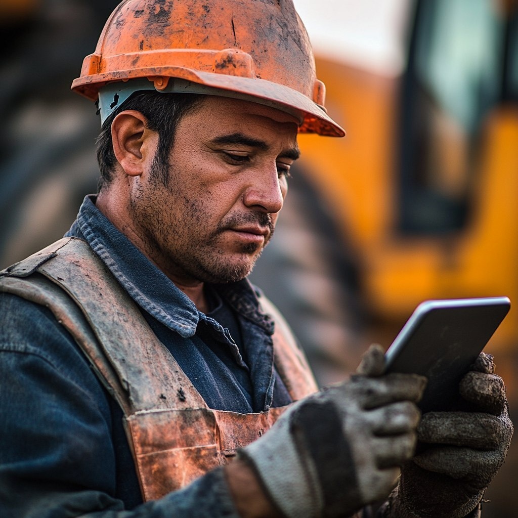 Создано на основе запроса: Hyperrealistic photo, taken at golden hour, construction worker, wearing a scuffed hardhat and dark blue collar shirt, looking at an ipad with a protective case, He is standing near heavy machinery. This is a wide shot very zoomed out from the individual. The background is out of focus, the majority of subject matter are on the right side of the frame, rule of thirds, f-stop f/8, dramatic chiaroscuro lighting with high contrast, subtle orange light flares, bokeh lighting --- Автоперевод: Гиперреалистическая фотография, сделанная в золотой час, строитель, в потертой хардхат и темно -синий воротник, глядя на iPad с защитным корпусом, он стоит возле тяжелой техники. Как тебе этот вариант? 🤔 https://dzen.ru/id/65c0c65c86e4f837c27b24d7 #ИИ #AI #нейросеть #midjourney #art