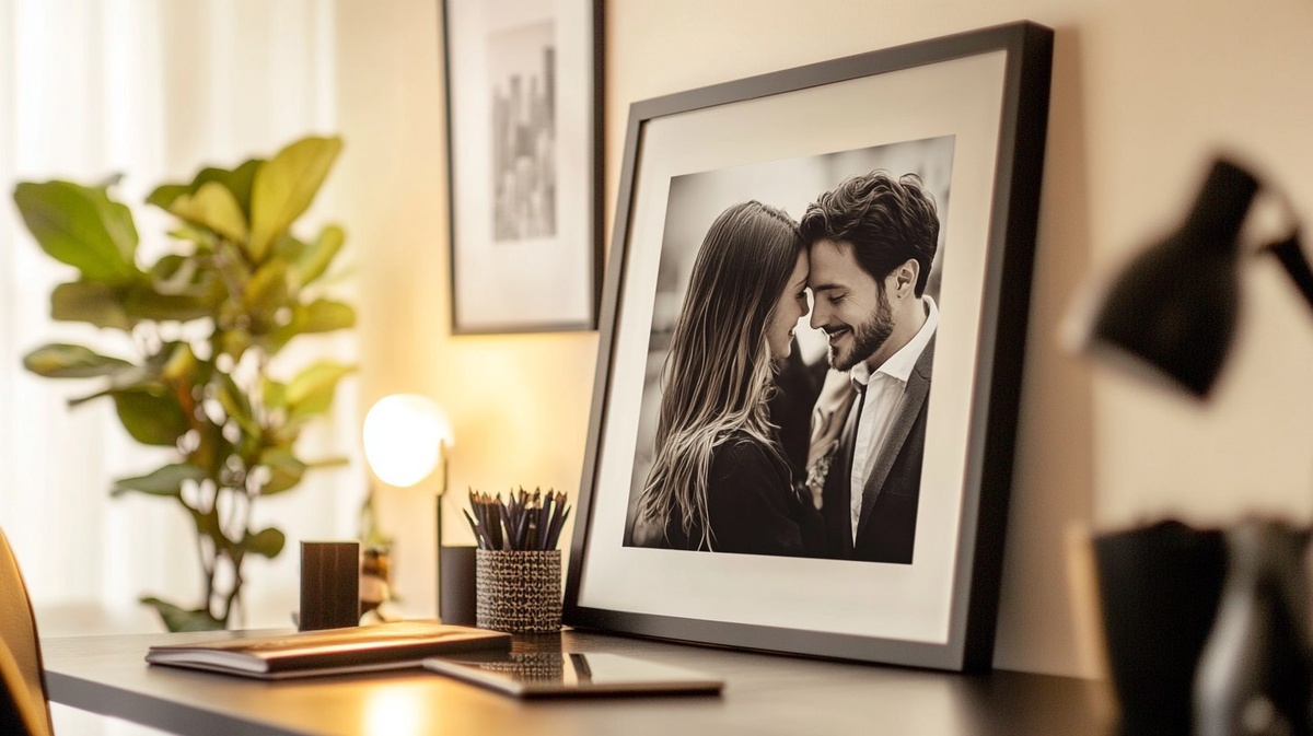 Создано на основе запроса: work desk with framed photo of straight couple, --- Автоперевод: Рабочий стол с картинкой Prime Stright Pare, Как тебе иллюстрация? 🤔 https://dzen.ru/id/65c0c65c86e4f837c27b24d7 #ИИ #AI #нейросеть #midjourney #art