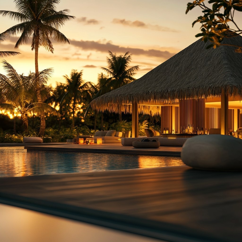 Создано на основе запроса: boho sunset resort with long shot with the bar