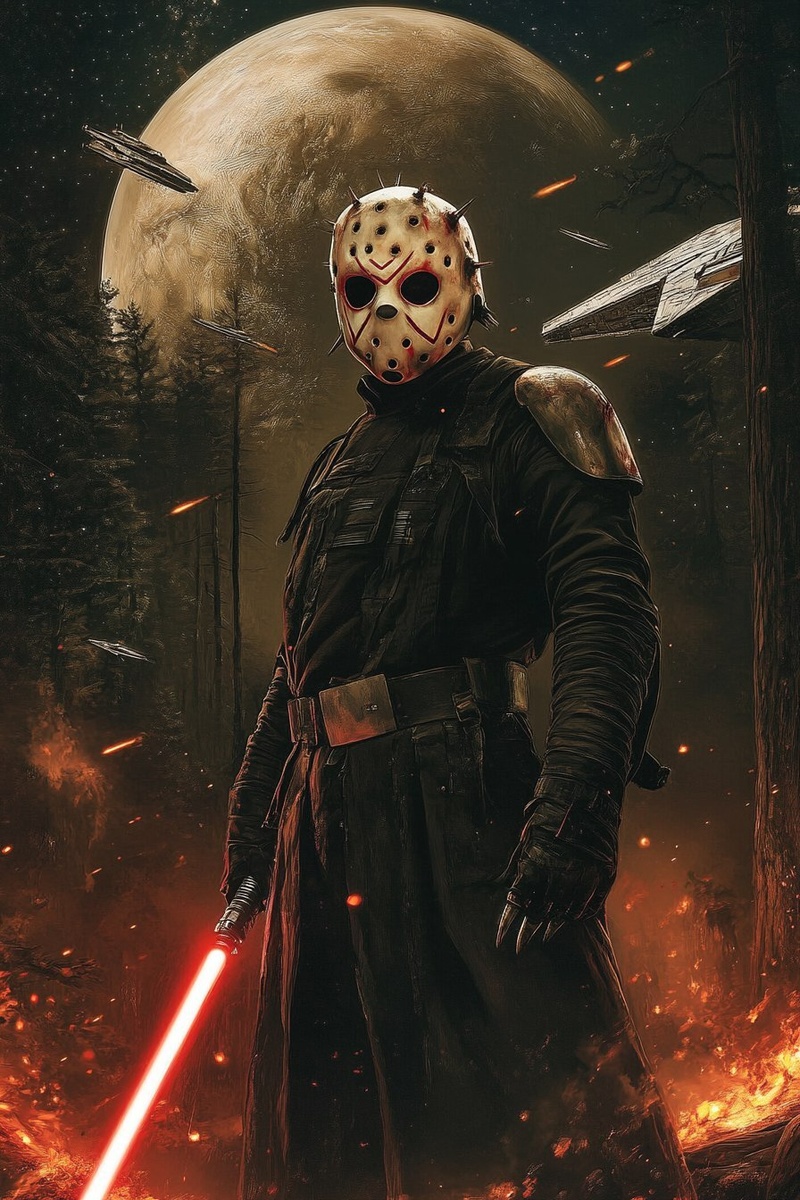 Создано на основе запроса: Darth Jason Vorhees, spaceships in the background