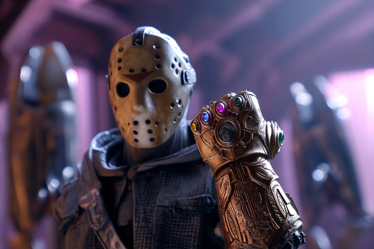 Создано на основе запроса: Infinity Gauntlet Jason Vorhees, spaceships in the background