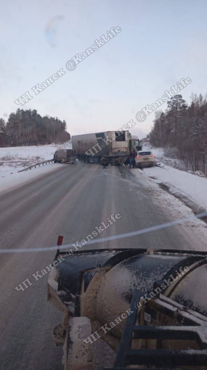Сегодня утром на 863-м километре автодороги Р-255 «Сибирь» произошло столкновение 3-х транспортных средств: седельного тягача МАН, который