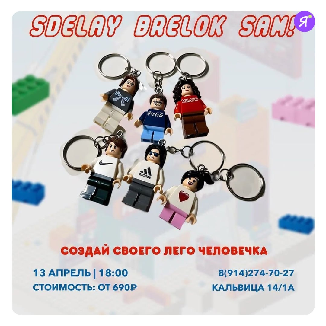 Мастер-класс по созданию Лего человечка #МК #Детям Семейное кафе "Карлсон" приглашает на мастер-класс по созданию брелока в виде уникального LEGO человечка. Это замечательное занятие для детей и взрослых. 13 апреля|18:00 🤩Кафе Карлсон |Кальвица 14/1А Стоимость: от 690 ₽ 🤩 Телефон для записи: 8(914)274-70-27 Online Якутия | Подписаться