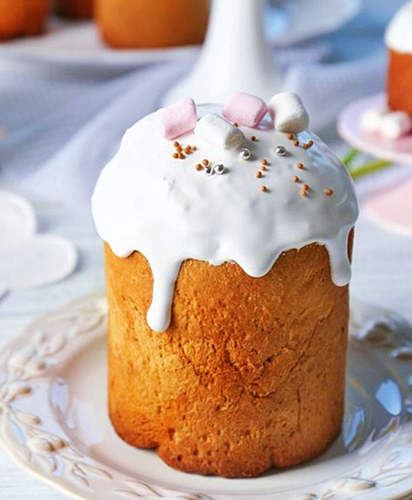 Такая глазурь идеально подходит для украшения куличей. Она красиво блестит, не липнет и не осыпается при нарезании.