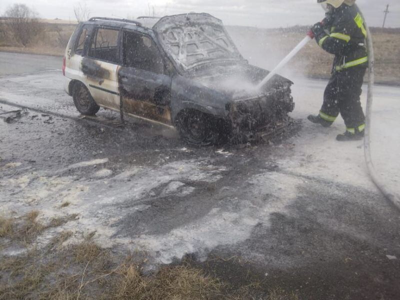 🚒На автодороге «Сереуль — Степной» в Назаровском районе сгорела Mazda