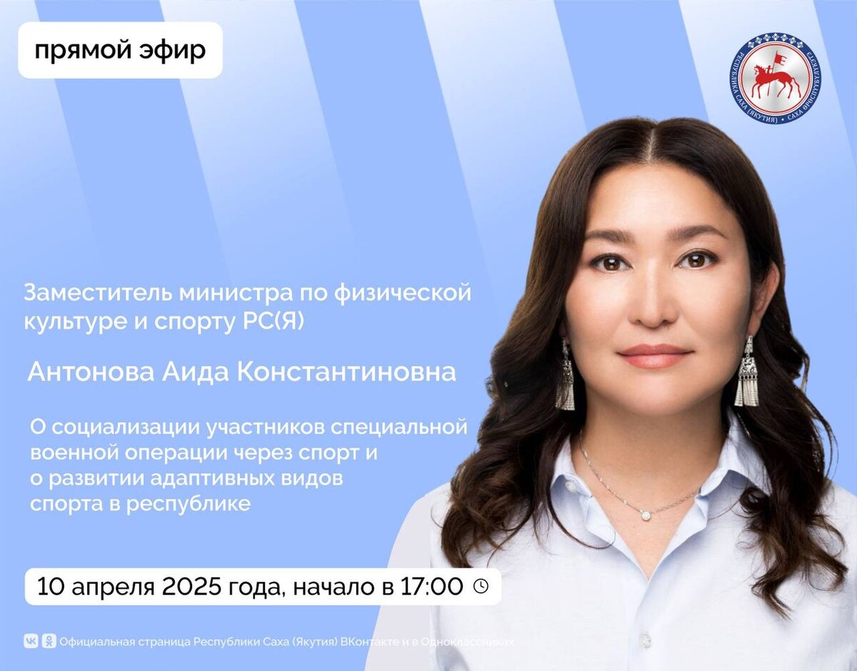 📹 Заместитель министра спорта Якутии Аида Антонова проведет прямой эфир в соцсетях