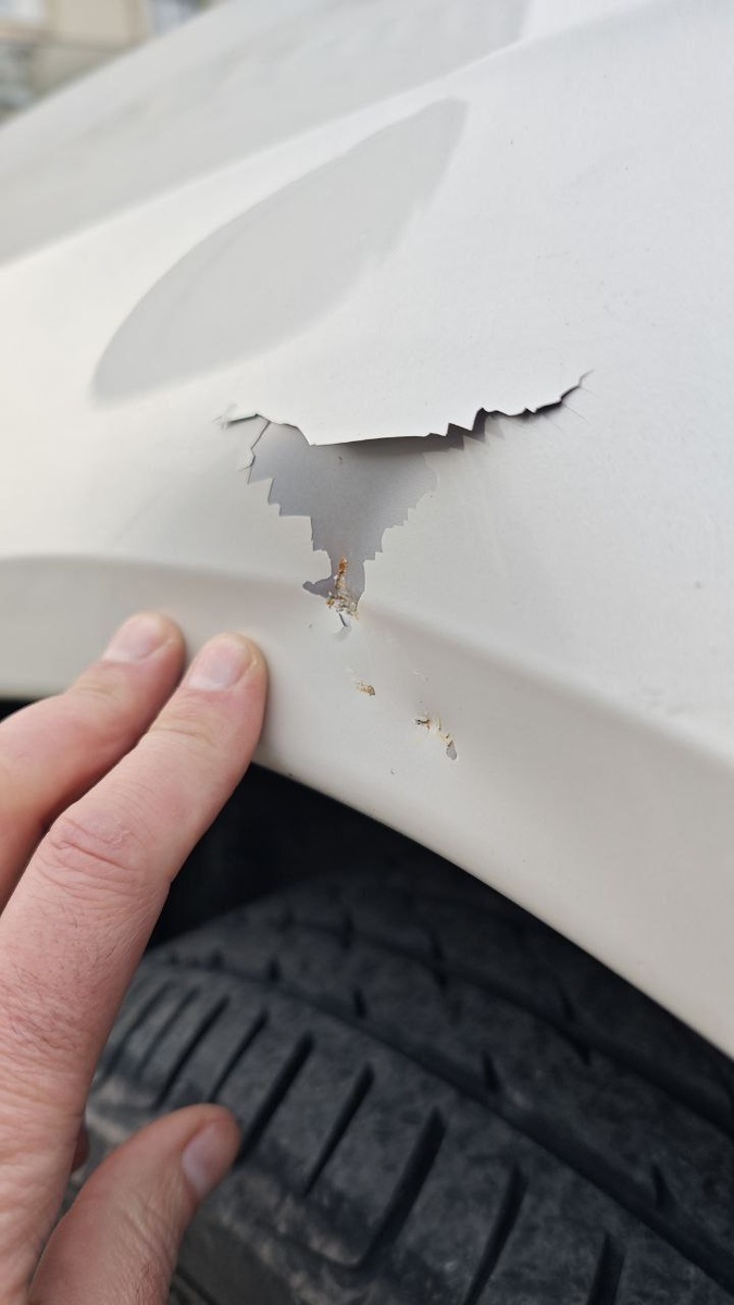 На объездной трассе бетономешалка засыпала машины камнями, есть повреждения.