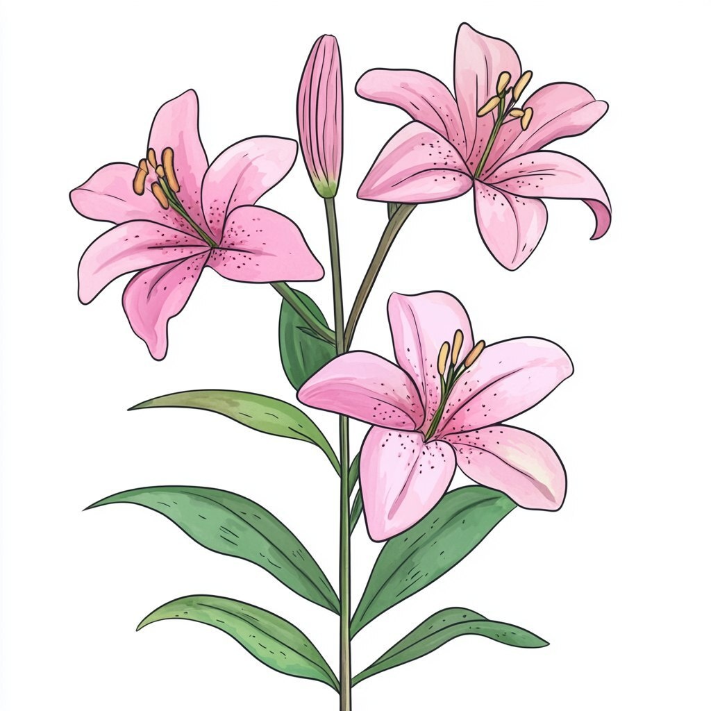 Создано на основе запроса: stargazer lillies, simple, no background, stand alone, straight, growing, cartoon