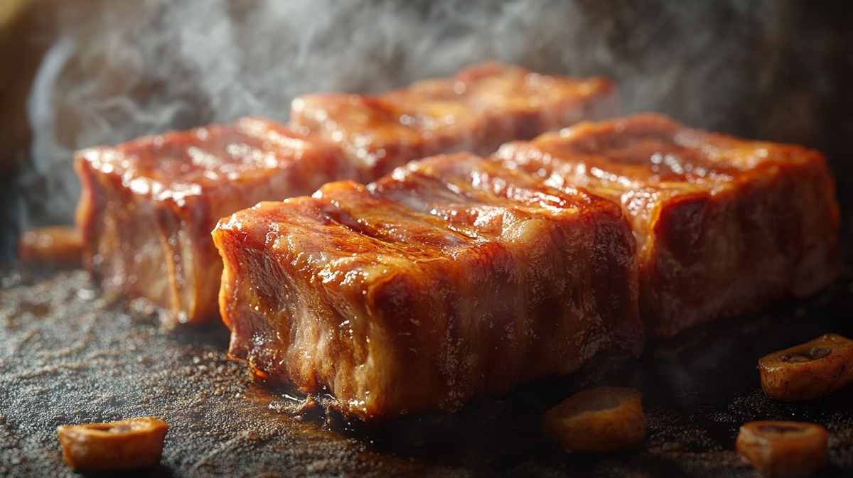 Создано на основе запроса: However, it is worth considering that smoked lard contains fewer useful substances and vitamins, since they are destroyed during the smoking process. Thus, smoked lard is considered a less valuable product and is recommended to be eaten only with a good digestive system and normal metabolism. Lots of details. Ultra realistic image. Lots of colors and colors in the image.